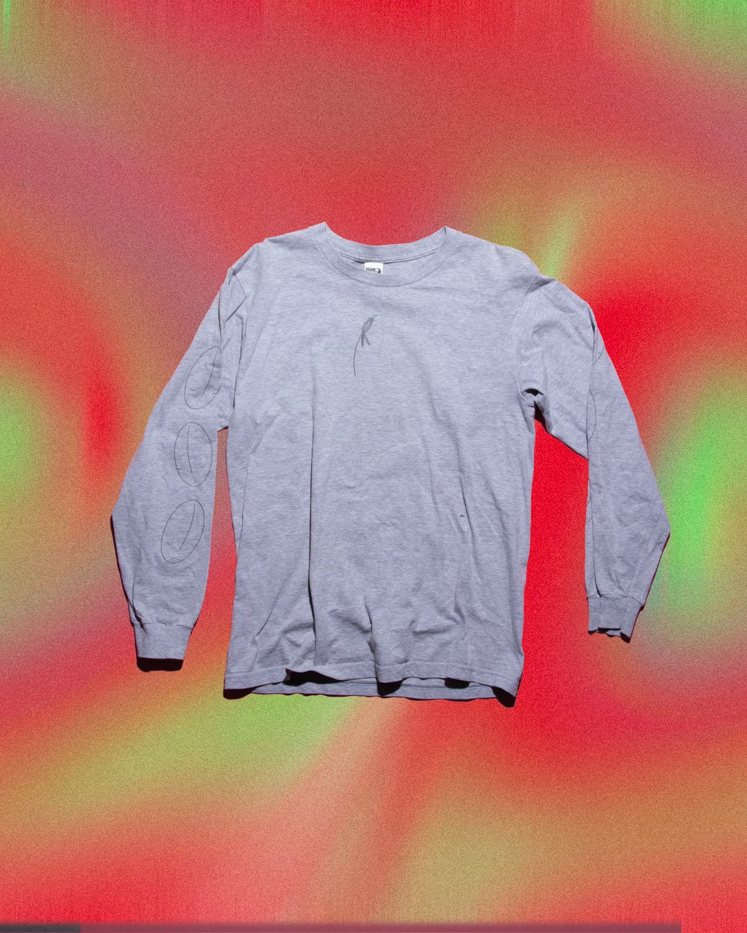 This garment has been screen-printed by me in my home studio in 2019 with silver ink on grey marle long sleeve.