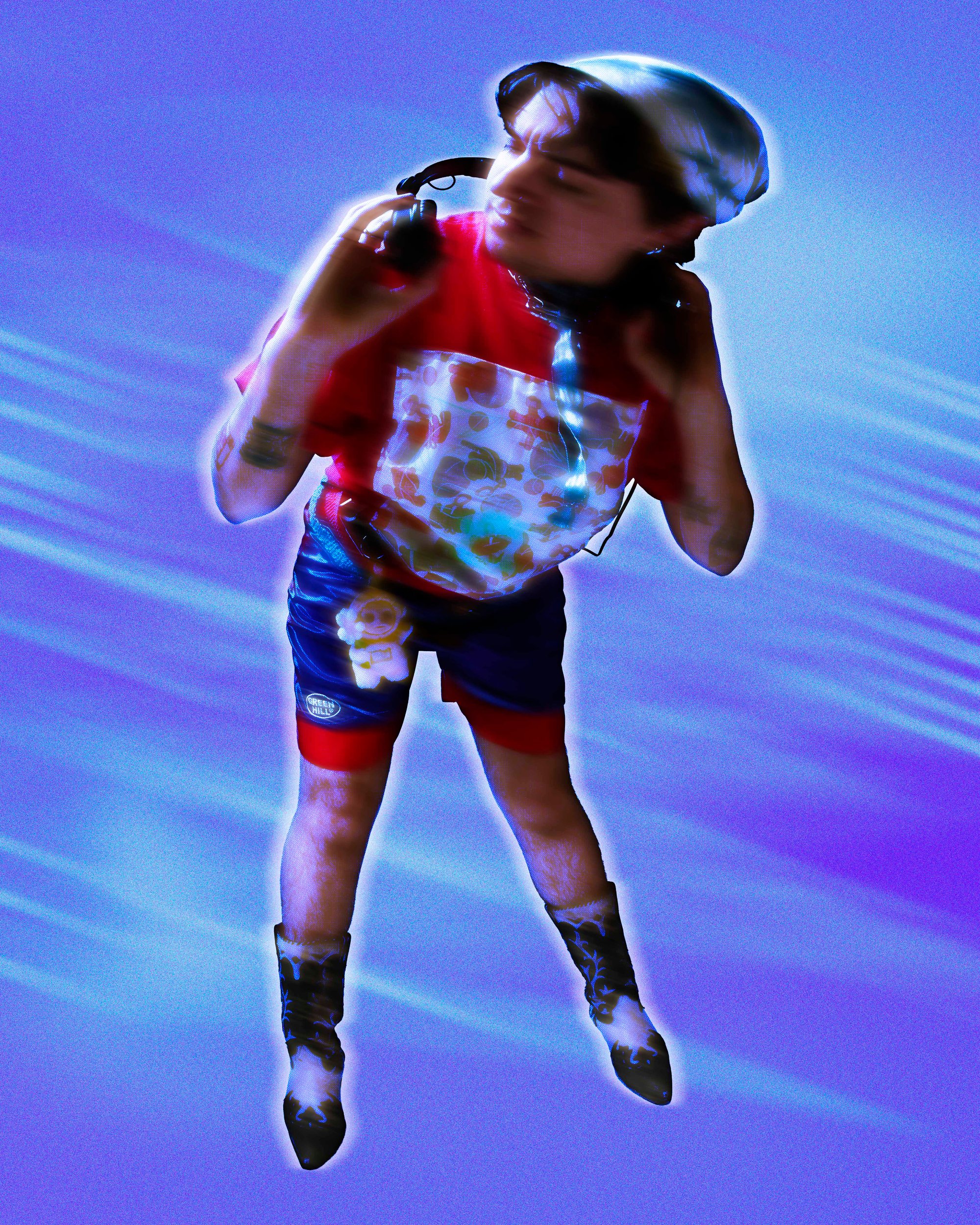 This garment was sourced second hand and it has been sewn with patches and screen-printed by me in my home studio.